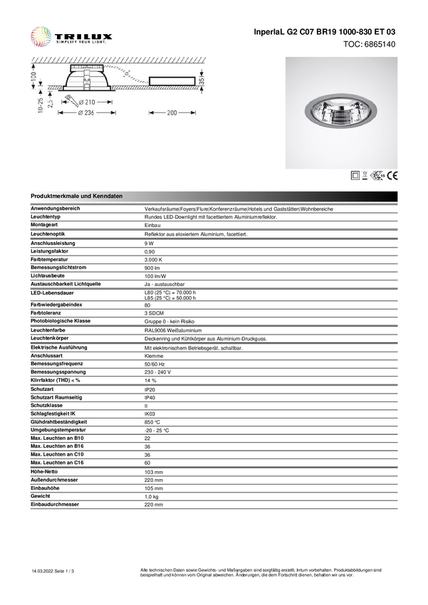 Oświetlenie wewnętrzne LED Trilux InperlaL G2 #6865140 6865140 9 W