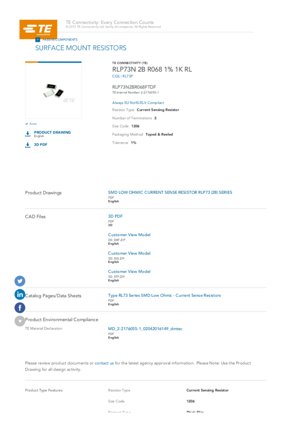 Res Thick Film 1206 68m Ohm 1% 1/2W ±300ppm/°C Molded SMD Paper T/R