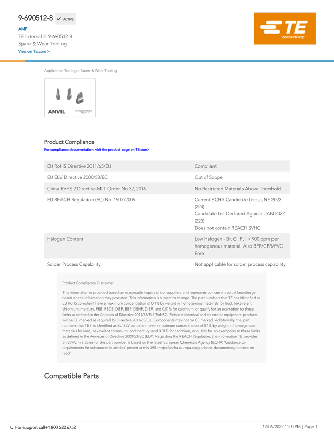 TE Connectivity TE AMP Assembled Applicators 4-690512-9
