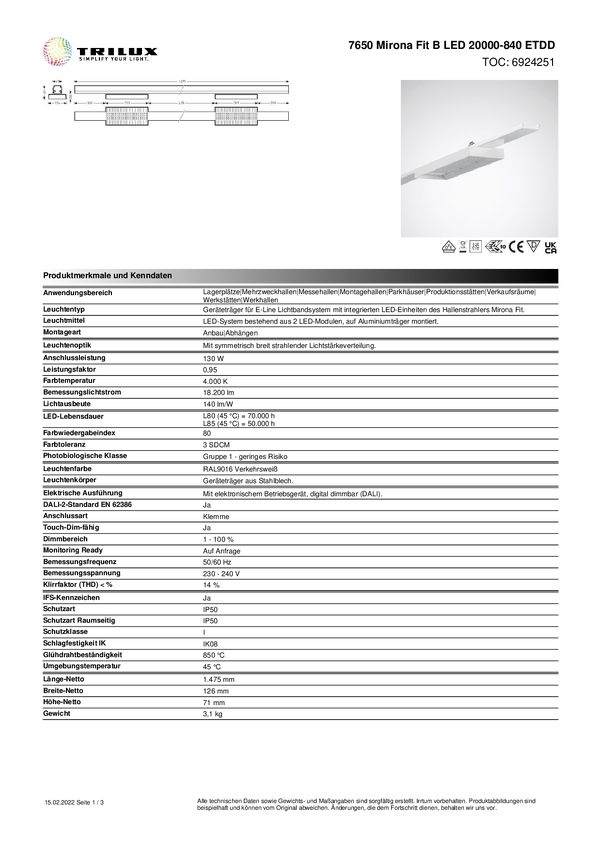 Trilux 6924251 7650 Mirona #6924251 Ciąg świetlny 130 W LED biały 1 szt.