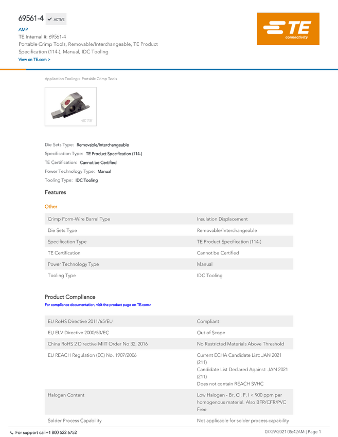 TE Connectivity TE AMP Insulation Displacement Tools 69561