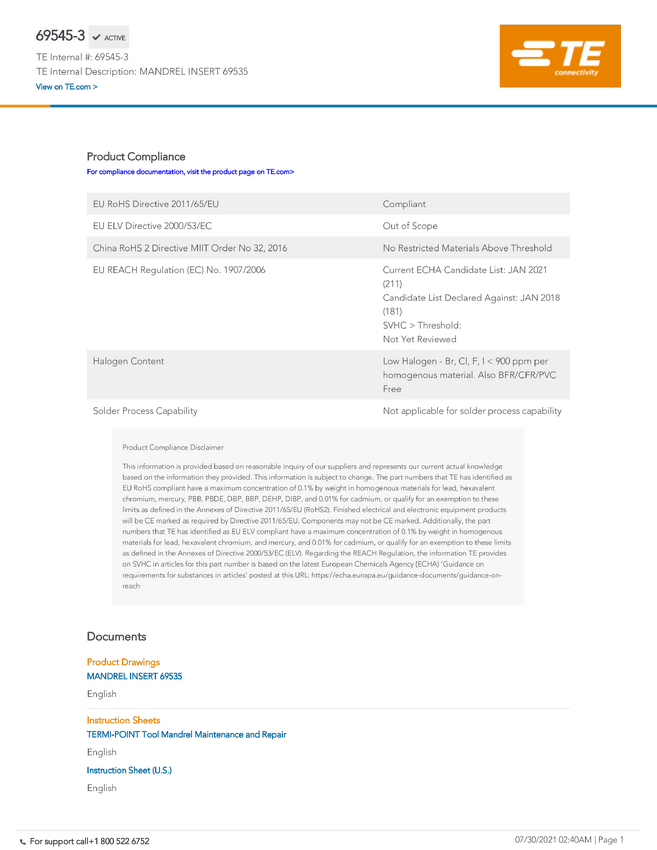 TE Connectivity TE AMP Insertion-Extraction Tools 69544-1