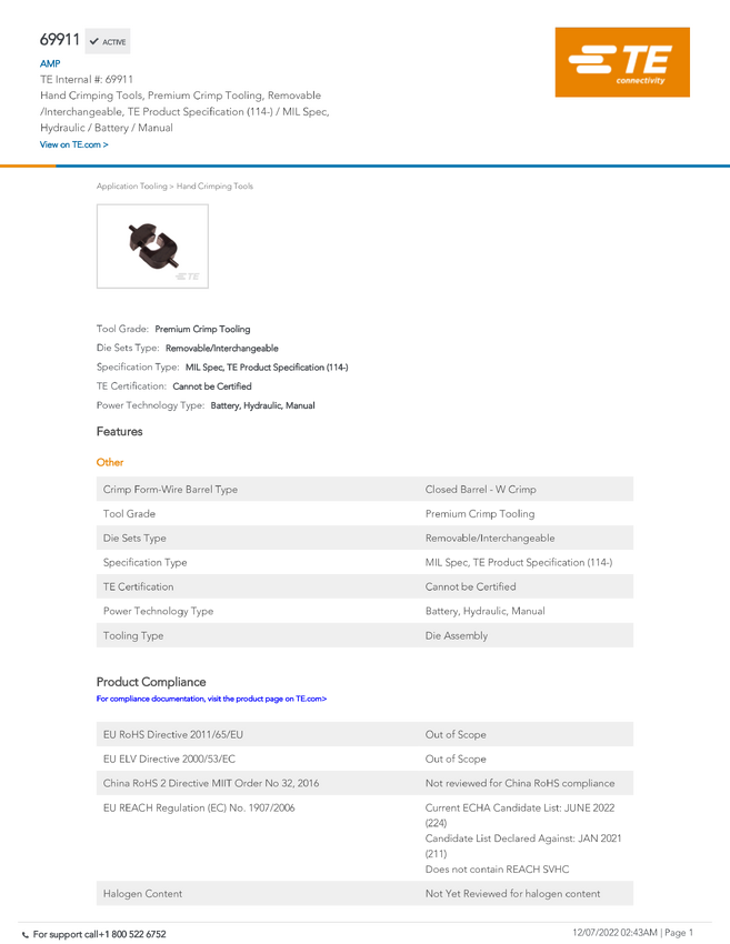 TE Connectivity 699226-000 TE RAY MTC Solder, 1 szt.