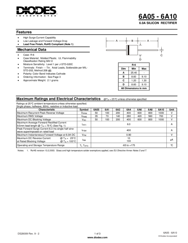 Dioda 6A, 400V, R6 ARK COMPONENT