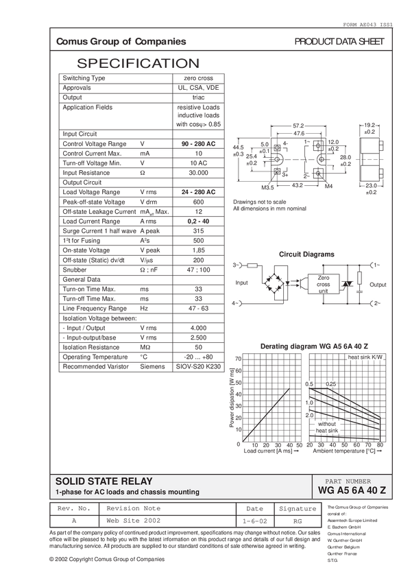 Przekaznik elektr. 280V 40A Z VERSION Przekaźnik dla prądu zmiennego AC, Wyjście Triak, sterowanie 90-280 V AC, nap. wyjściowe 24-280V odpowiednik Crydom A 2450
