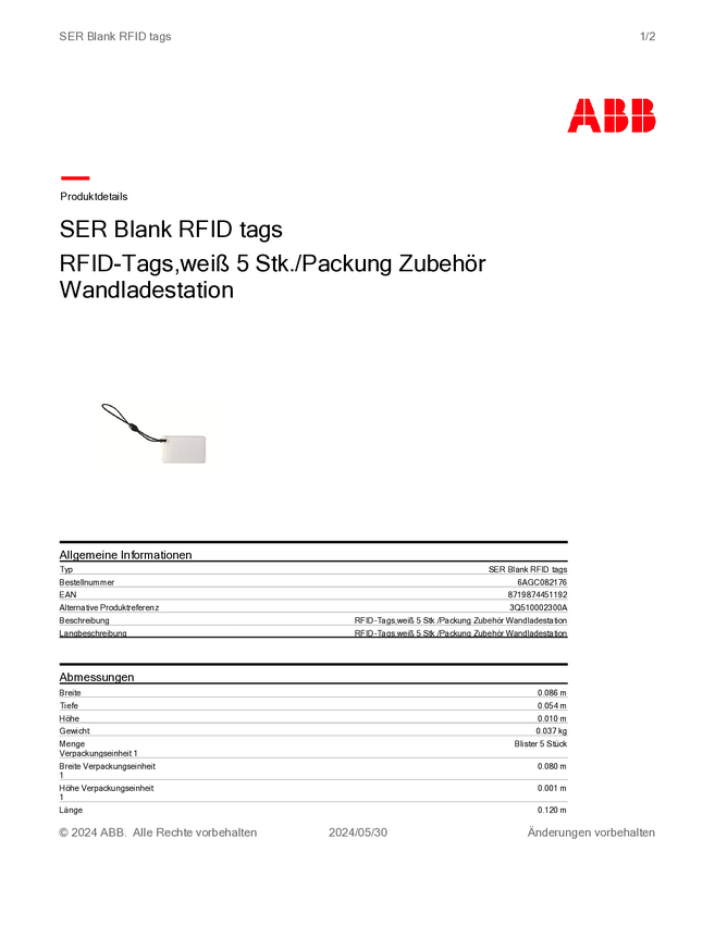 Chip RFID ABB SER-BLANKRFIDTAGS
