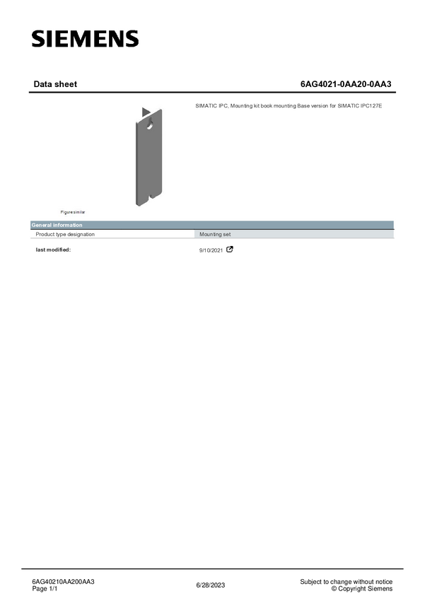 Materiał montażowy PLC Siemens 6AG4021-0AA20-0AA3 6AG40210AA200AA3