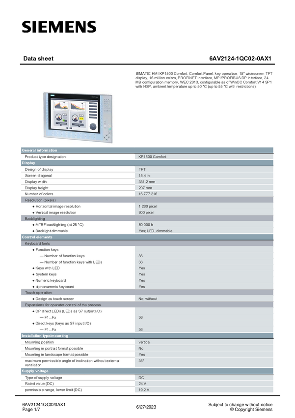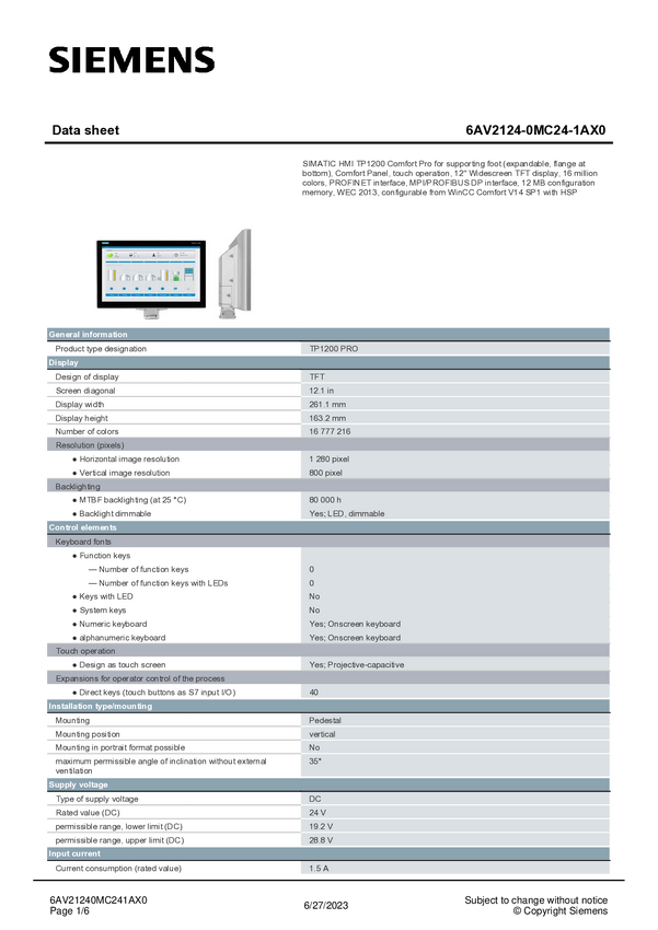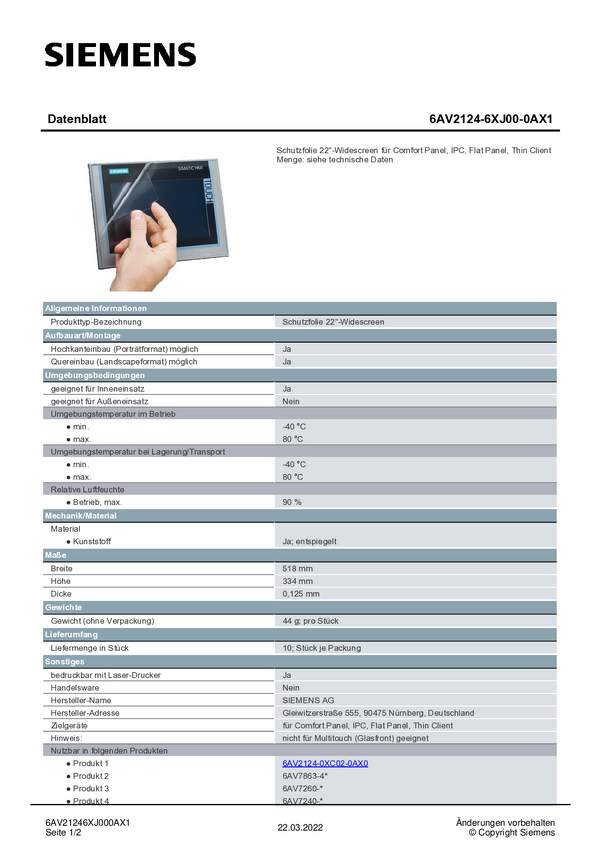 Folia ochronna PLC Siemens 6AV2124-6XJ00-0AX1 6AV21246XJ000AX1