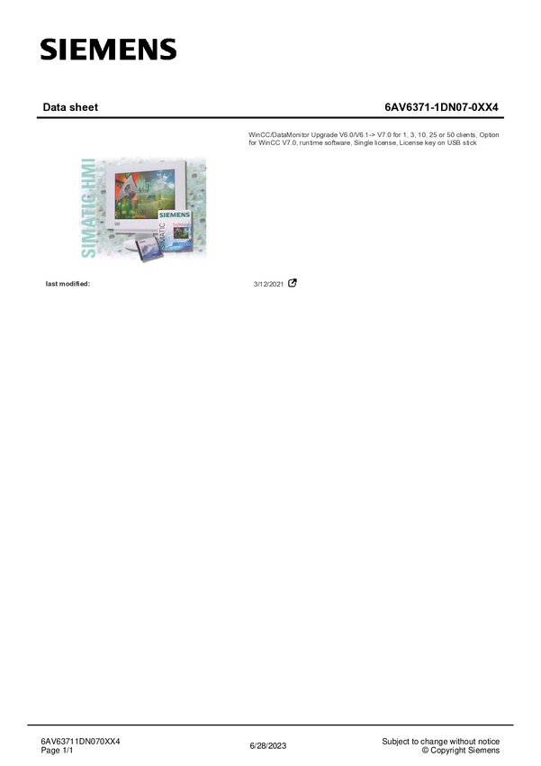 Zestaw startowy Siemens 6AV6371-1DV17-5BX4 6AV63711DV175BX4