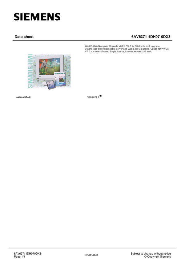Zestaw startowy Siemens 6AV6371-1DH07-0CX3 6AV63711DH070CX3