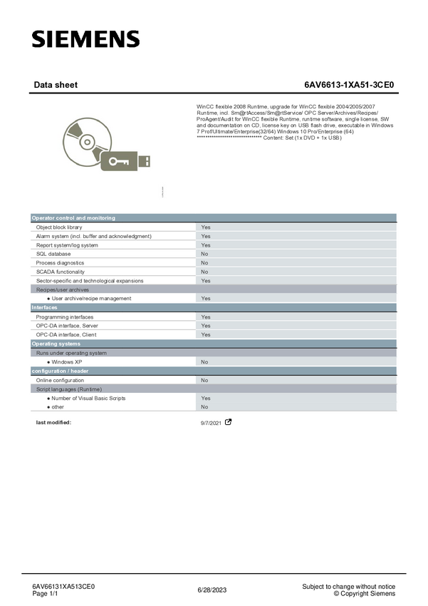 Oprogramowanie PLC Siemens 6AV6613-1XA51-3CU8 6AV66131XA513CU8