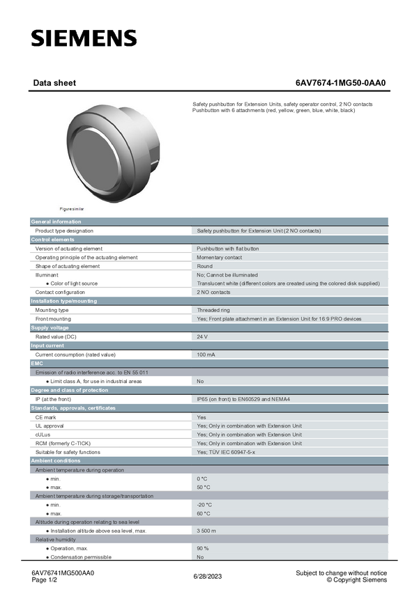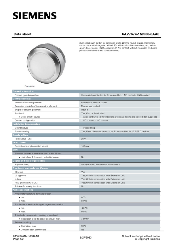 Przycisk podświetlany PLC Siemens 6AV7674-1MG00-0AA0 6AV76741MG000AA0