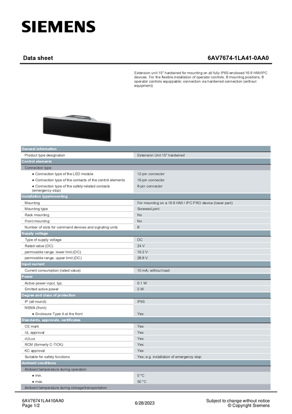 Moduł rozszerzeń PLC Siemens 6AV7674-1LA50-0AA0 6AV76741LA500AA0