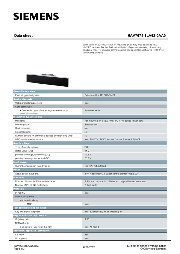 Moduł rozszerzeń PLC Siemens 6AV7674-1LA62-0AA0 6AV76741LA620AA0