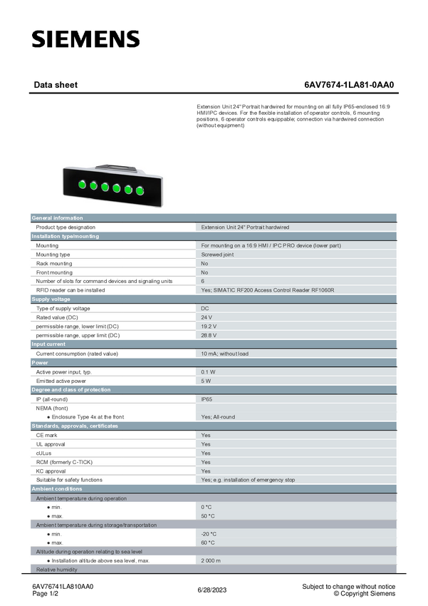 Moduł rozszerzeń PLC Siemens 6AV7674-1LA81-0AA0 6AV76741LA810AA0