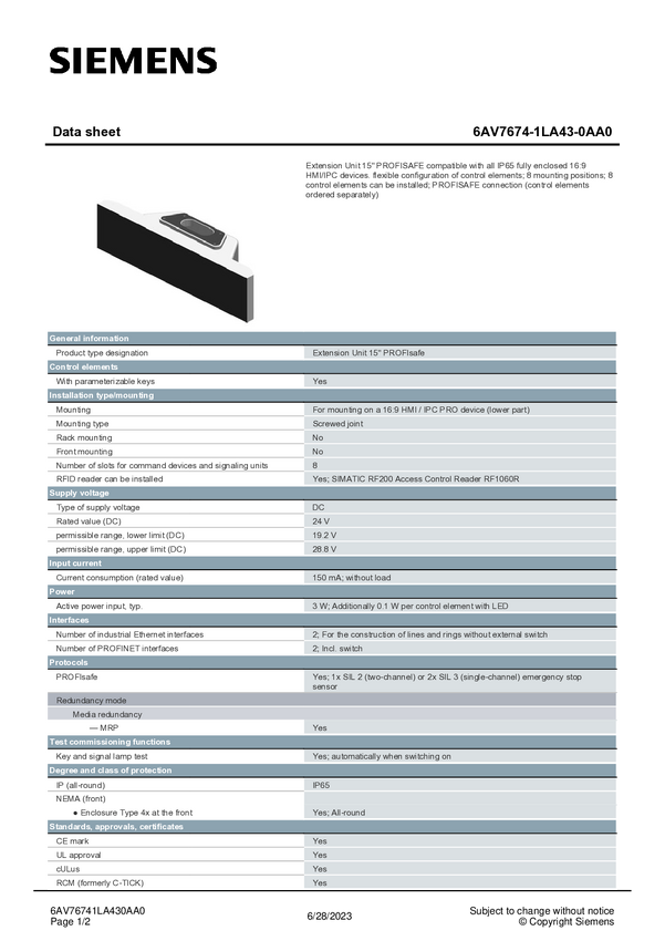 Moduł rozszerzeń PLC Siemens 6AV7674-1LA73-0AA0 6AV76741LA730AA0