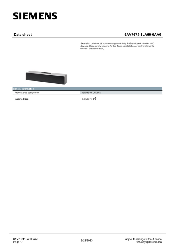 Moduł rozszerzeń PLC Siemens 6AV7674-1LA60-0AA0 6AV76741LA600AA0
