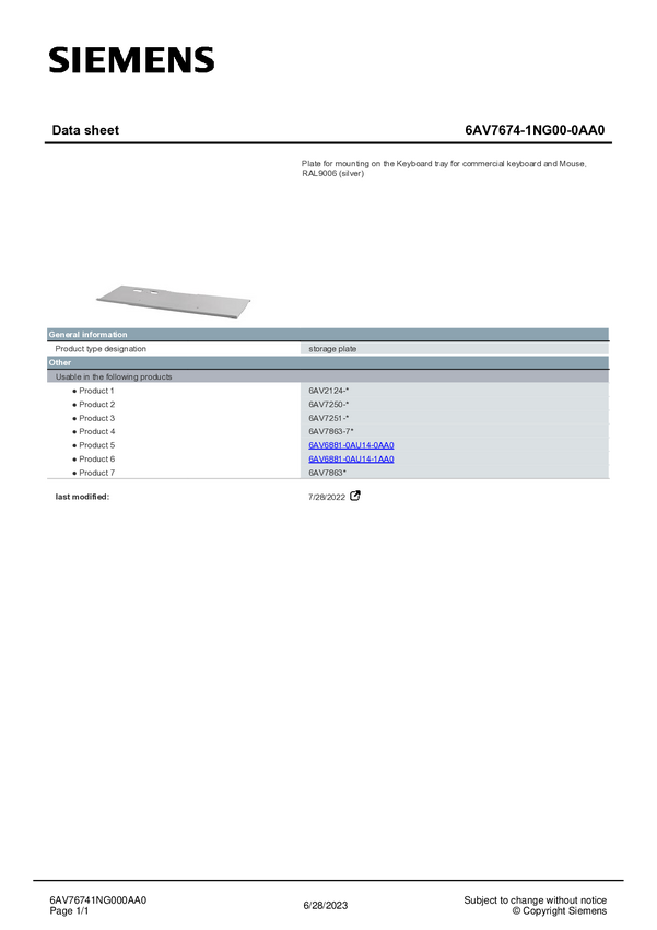 Uchwyt SPS Siemens 6AV7674-1LB10-0AA0 6AV76741LB100AA0
