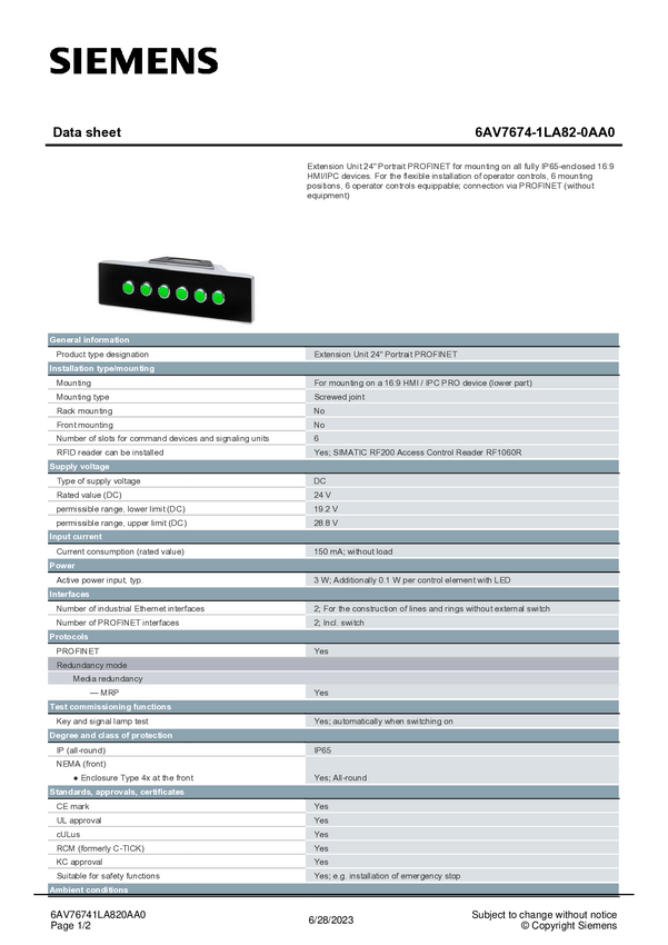 Moduł rozszerzeń PLC Siemens 6AV7674-1LA82-0AA0 6AV76741LA820AA0