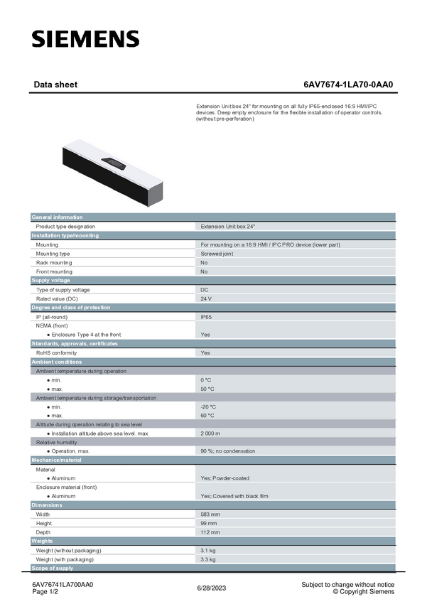 Moduł rozszerzeń PLC Siemens 6AV7674-1LA70-0AA0 6AV76741LA700AA0