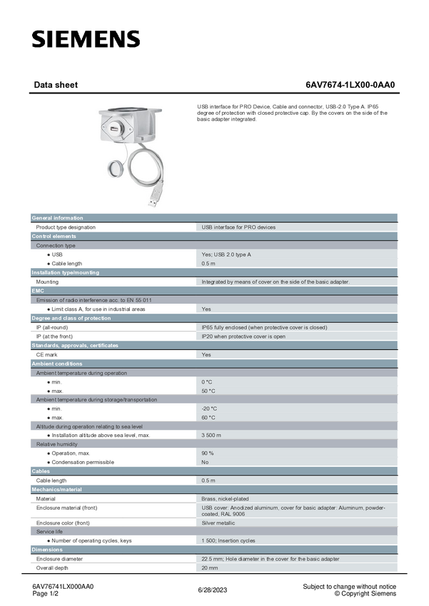 Interfejs USB sterownika PLC Siemens 6AV7674-1LX00-0AA0 6AV76741LX000AA0