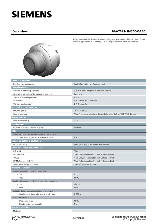 Uchwyt klucza PLC Siemens 6AV7674-1ME50-0AA0 6AV76741ME500AA0