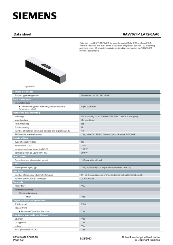 Moduł rozszerzeń PLC Siemens 6AV7674-1LA72-0AA0 6AV76741LA720AA0