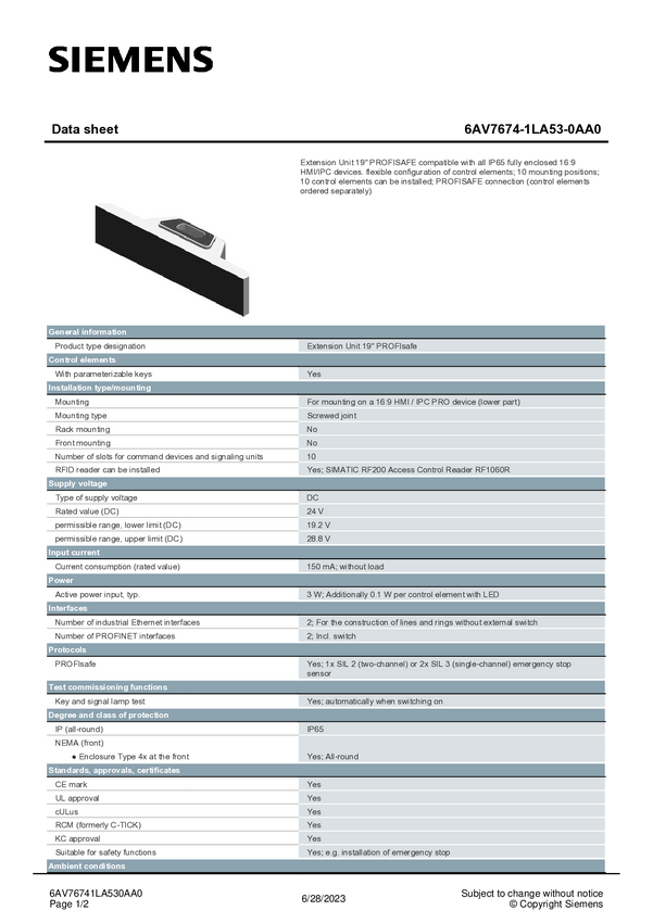 Moduł rozszerzeń PLC Siemens 6AV7674-1LA53-0AA0 6AV76741LA530AA0