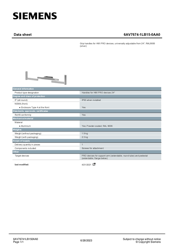 Uchwyt SPS Siemens 6AV7674-1LB15-0AA0 6AV76741LB150AA0
