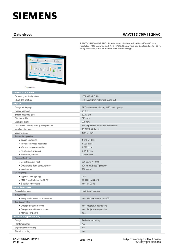 Panel obsługi PLC Siemens 6AV7863-1MA14-2AA0 6AV78631MA142AA0