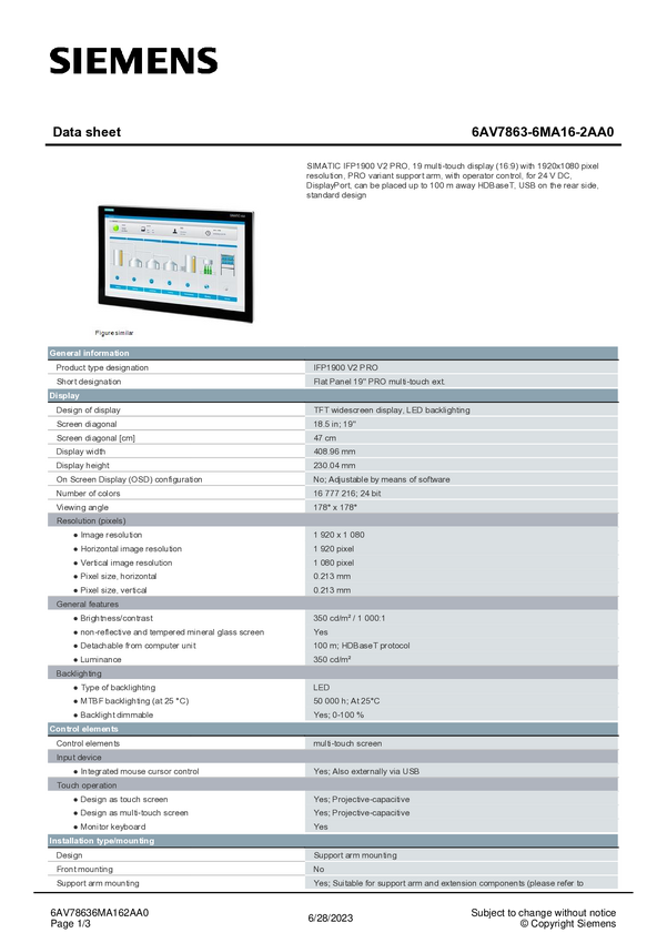 Panel obsługi PLC Siemens 6AV7863-1MA16-2AA0 6AV78631MA162AA0