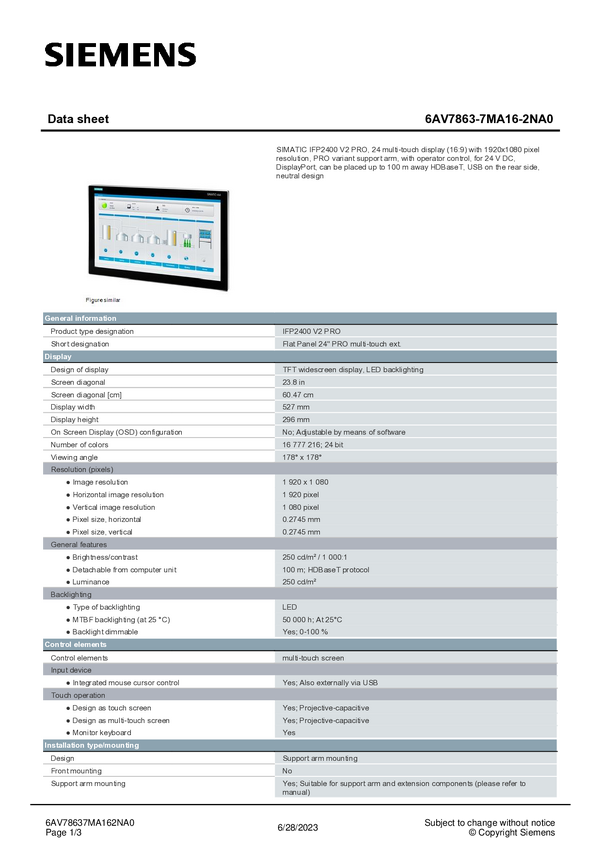 Panel obsługi PLC Siemens 6AV7863-7MA17-2NA0 6AV78637MA172NA0