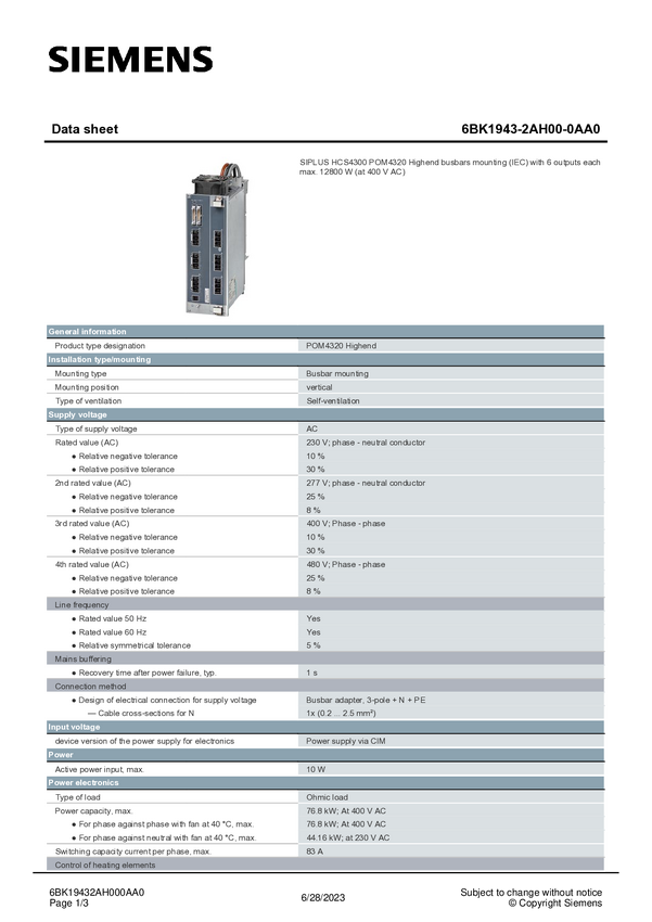 Termostat Siemens 6BK1943-2AH00-0AA0