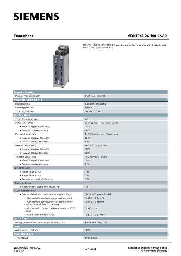 Termostat Siemens 6BK1943-2AA00-0AA2