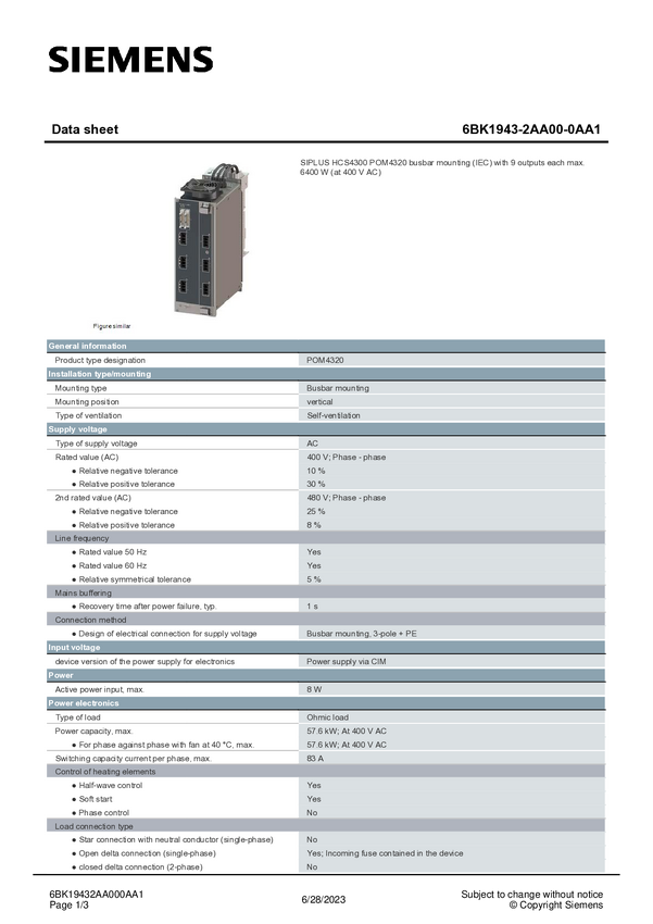Termostat Siemens 6BK1943-2AA00-0AA1