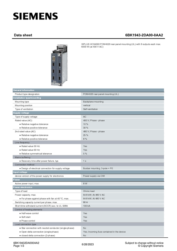 Termostat Siemens 6BK1943-2DA00-0AA2