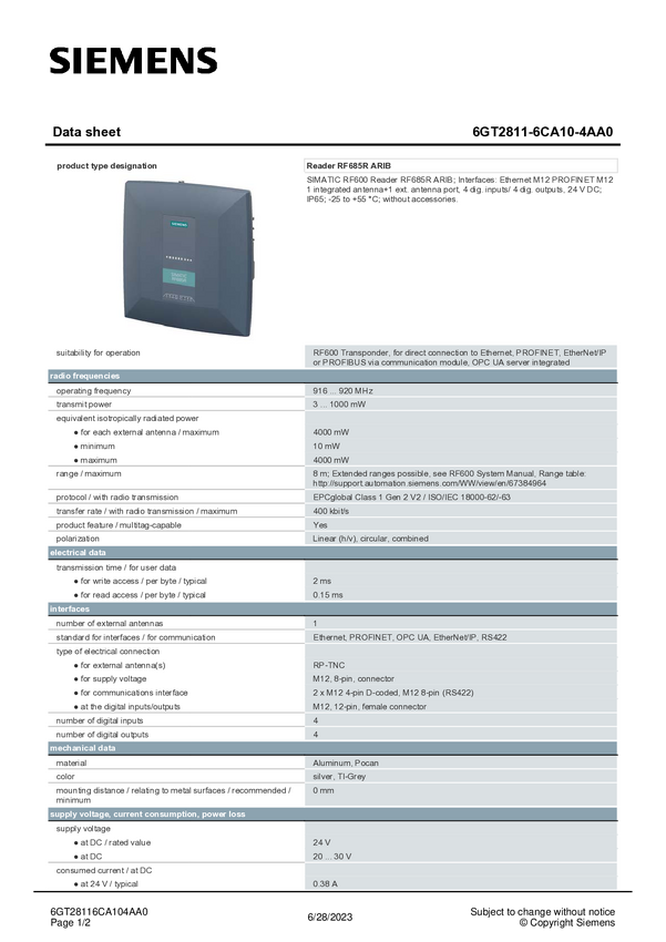 Siemens 6GT2811-6CA10-4AA0 Reader