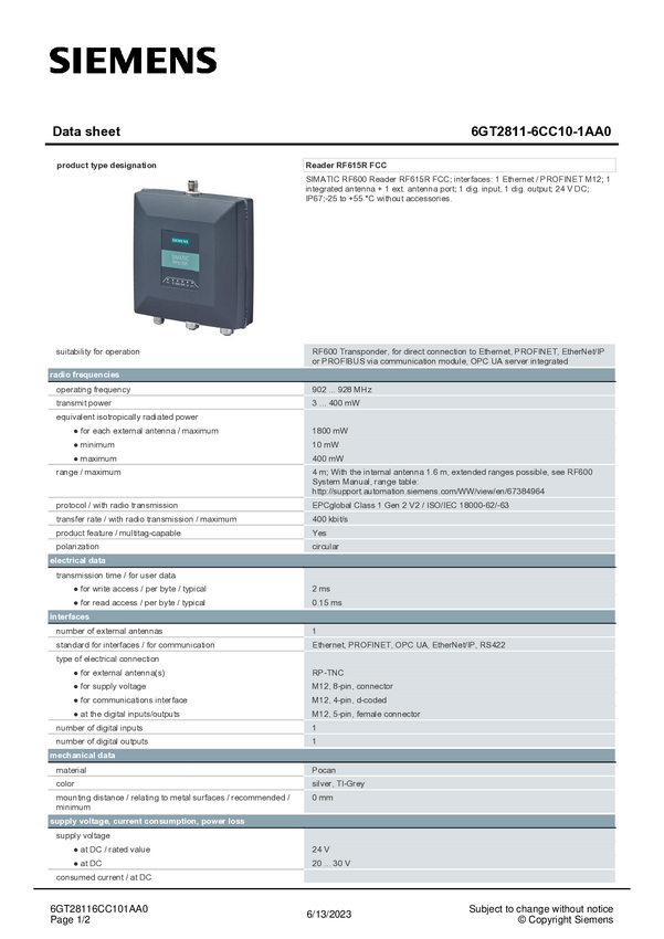 Siemens 6GT2811-6CC10-0AA0 Reader