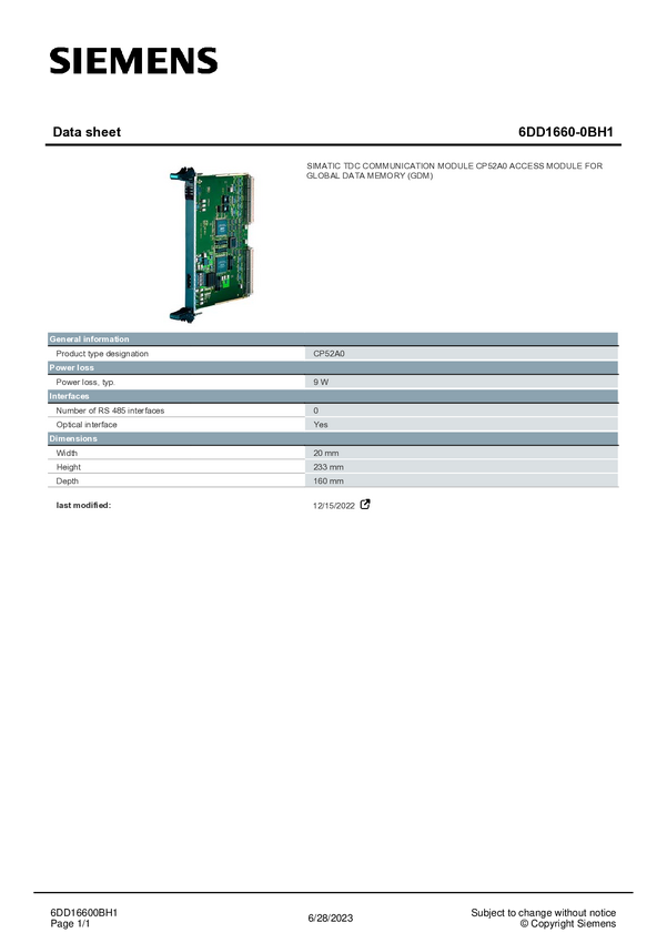Siemens 6DD1660-0BH1 Moduł kontrolera PLC
