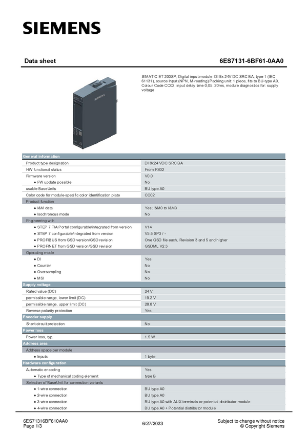 Siemens 6ES7131-6BF61-0AA0