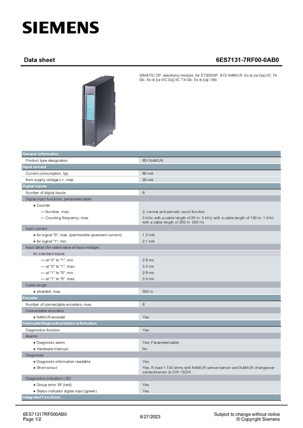 Siemens 6ES7131-7RF00-0AB0