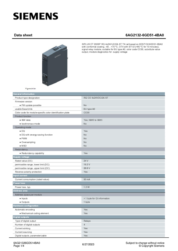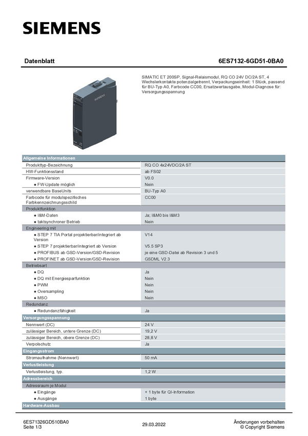 Moduł rozszerzeń PLC Siemens 6ES7132-6GD51-0BA0 6ES71326GD510BA0