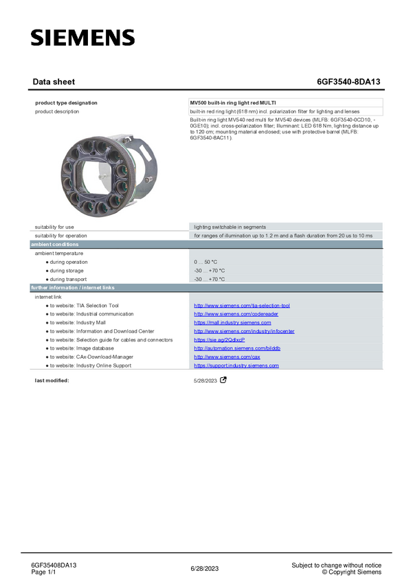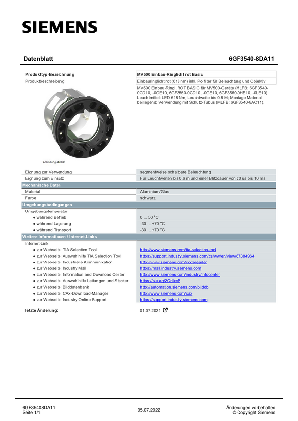 Pierścień świecący Siemens 6GF3540-8DA11 1 szt.
