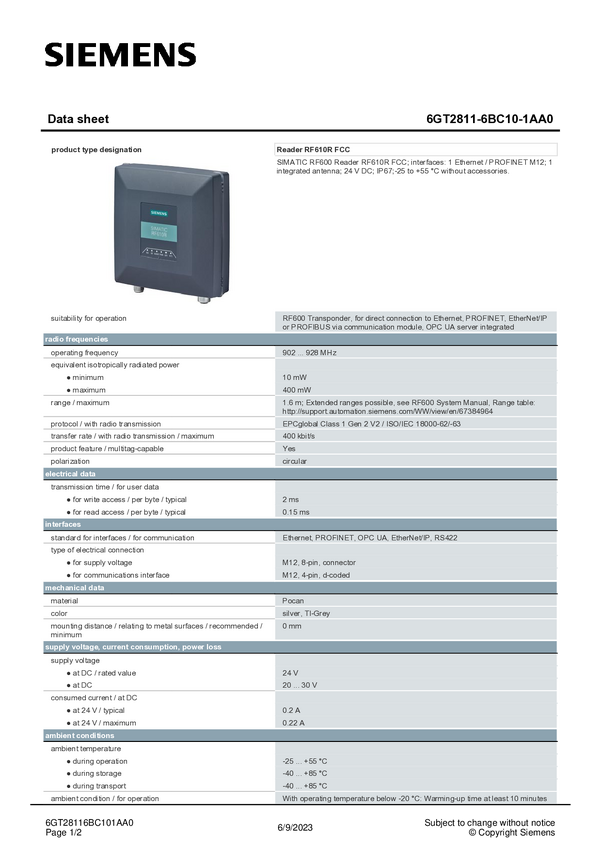 Siemens 6GT2811-6CC10-0AA0 Reader