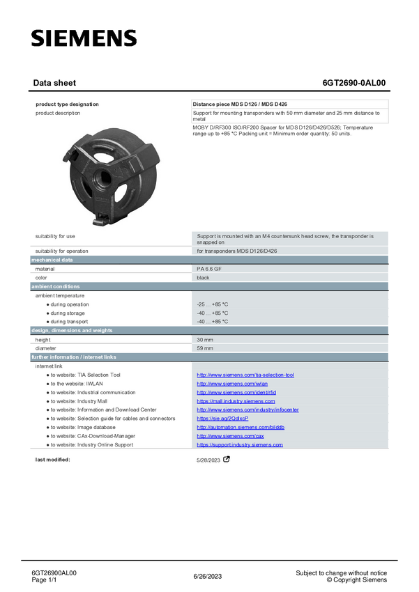 Siemens 6GT2690-0AL00 Podkładka dystansowa