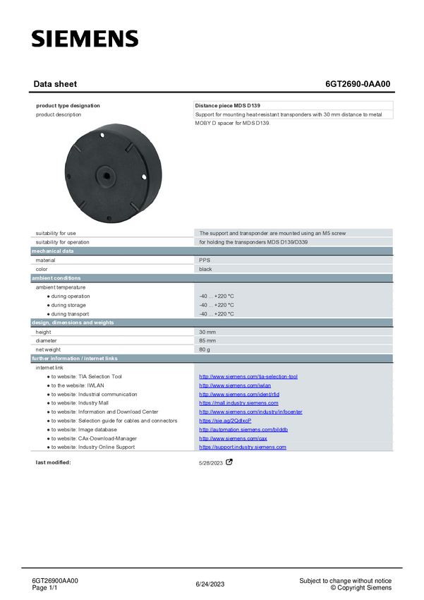 Siemens 6GT2690-0AA00 Podkładka dystansowa