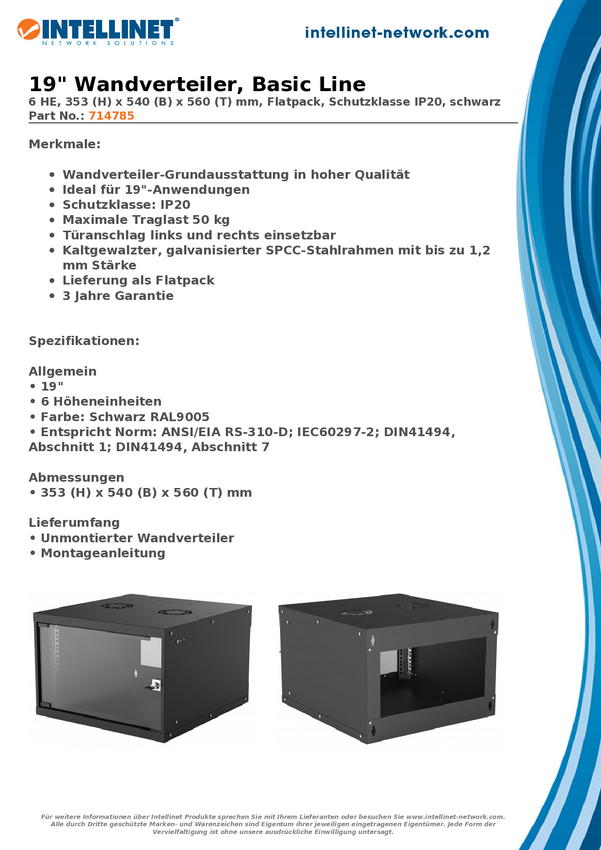 Szafa rack wisząca 19'' Intellinet Basic Line 6HE (S x W x G) 540 x 353 x 560 mm 6 U