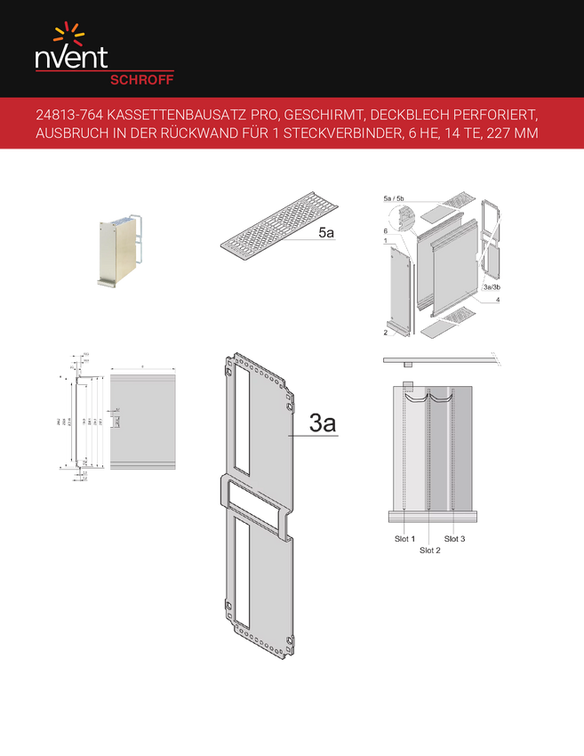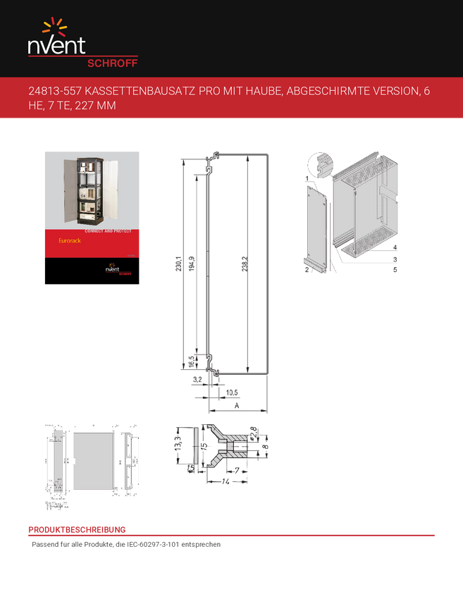 Kasety SCHROFF PRO z kapturem, 6 HE, ekranowany panel przedni (uszczelka tekstylna) - KAS M.HAUBE EMV 6HE 6TE 167T