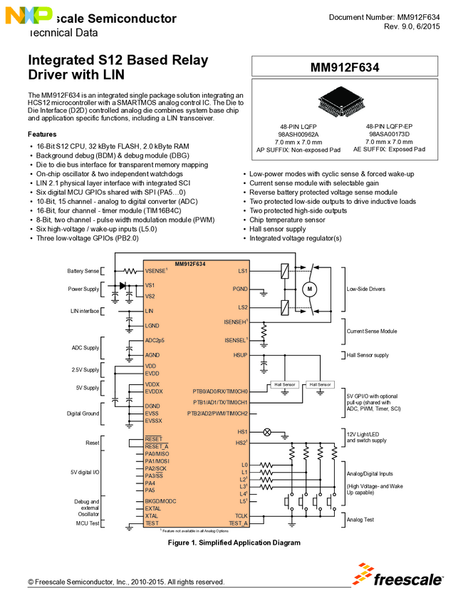 MagniV S12 Relay Driver, 2x HS/LS , I sense, 16-bit MCU, 6KB RAM, 32KB Flash, LIN, QFP-EP 48