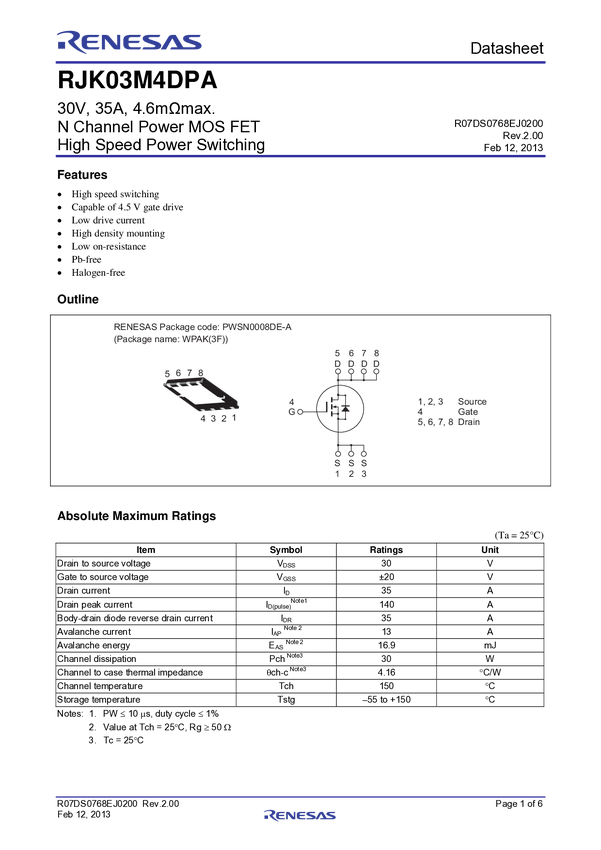 Nch Power MOSFET 30V 35A 4.6mohm Power SON-8 5x6